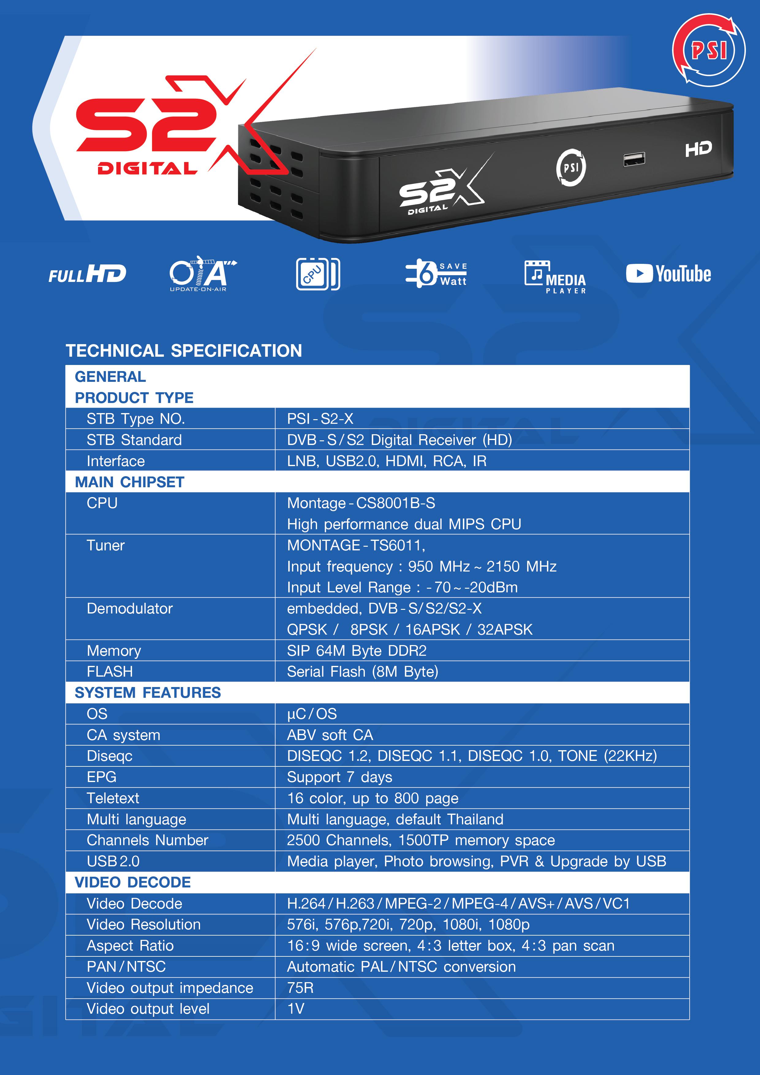 อุปกรณ์ในกล่องมี1.เครื่องรับดาวเทียม S2X HDMI 1เครื่อง2.สายต่อภาพHDMI 1เส้น3.รีโมทพร้อมถ่าน  2ก้อนรายละเอียดสินค้า